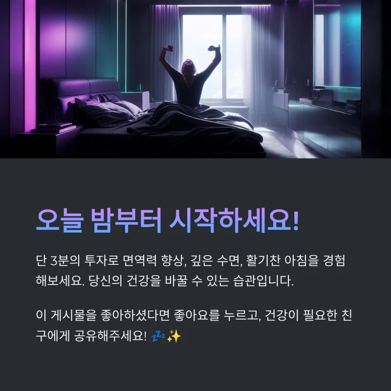 🕒 단 3분, 자기 전 이 루틴을 실천하는 것만으로도 면역력은 충분히 회복될 수 있어요.
